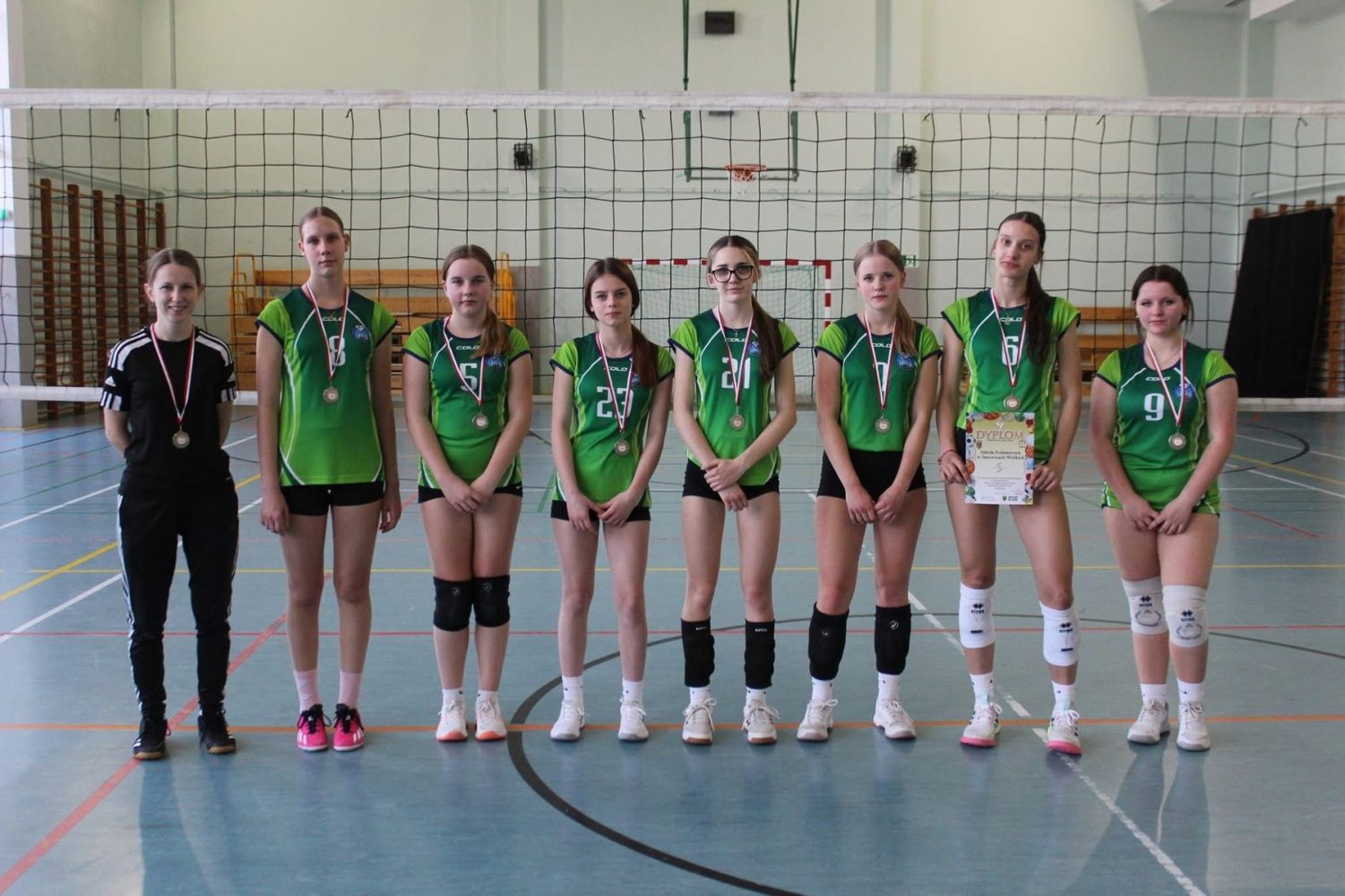 Gratulacje dla całej drużyny składają nauczyciele wychowania fizycznego – Małgorzata Zięba-Sokół oraz Piotr Lesiński.