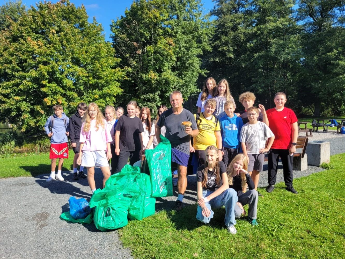 Młodzież rozpoczęła akcję w szkolnej auli od obejrzenia interesującej prezentacji oraz wysłuchania informacji dotyczących Akcji Sprzątania Świata w 2025 roku. Następnie, idąc wyznaczonymi trasami i szlakami turystycznymi, zbierali pozostawione w tych miejscach nieczystości. Po raz kolejny stwierdzamy, że każdego roku śmieci jest coraz mniej, co świadczy o kulturze osób mieszkających w gminie i korzystających ze szlaków turystycznych. Po sprzątnięciu terenów wszyscy uczniowie udali się do Parku Rekreacyjnego Zielona Dolina, gdzie wzięli udział w poczęstunku – ognisku zorganizowanym przez Koło Łowieckie „TUR” i pana Edwarda.