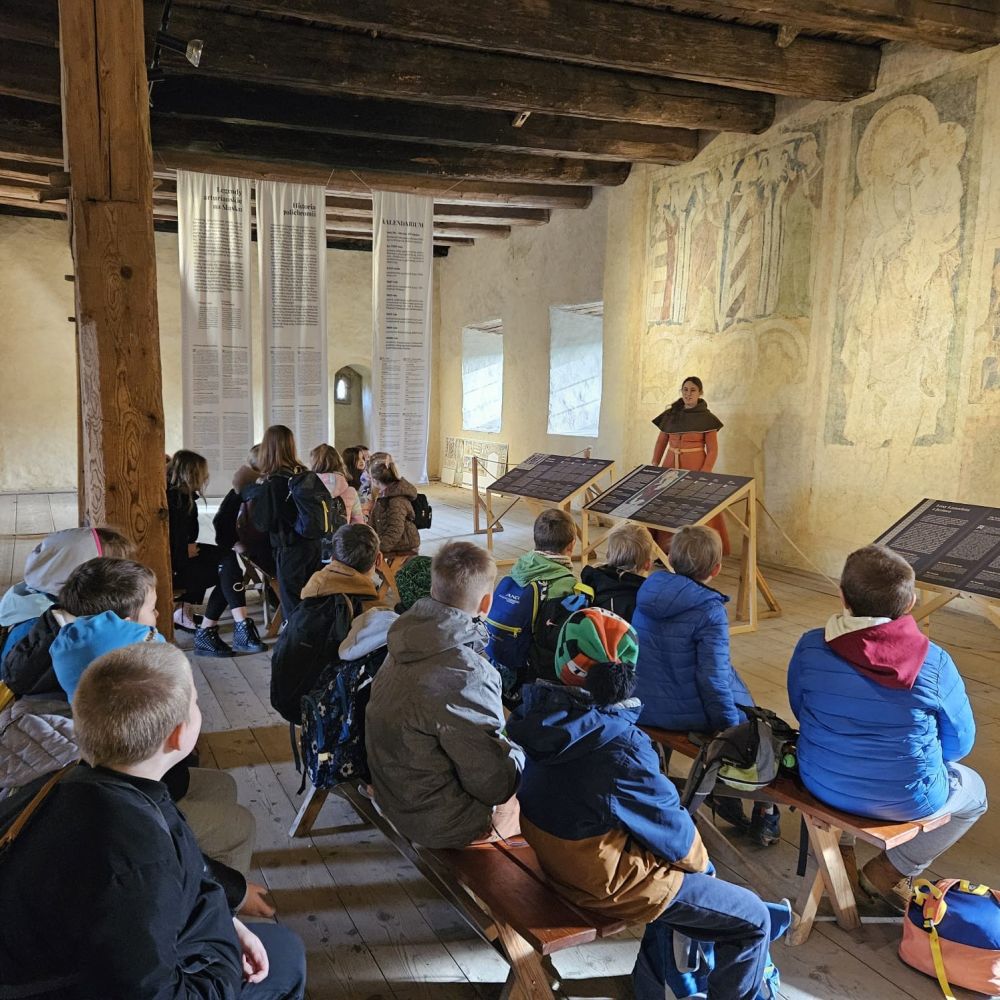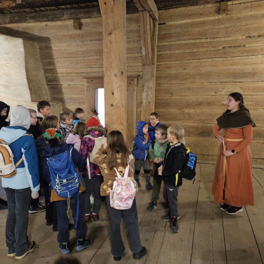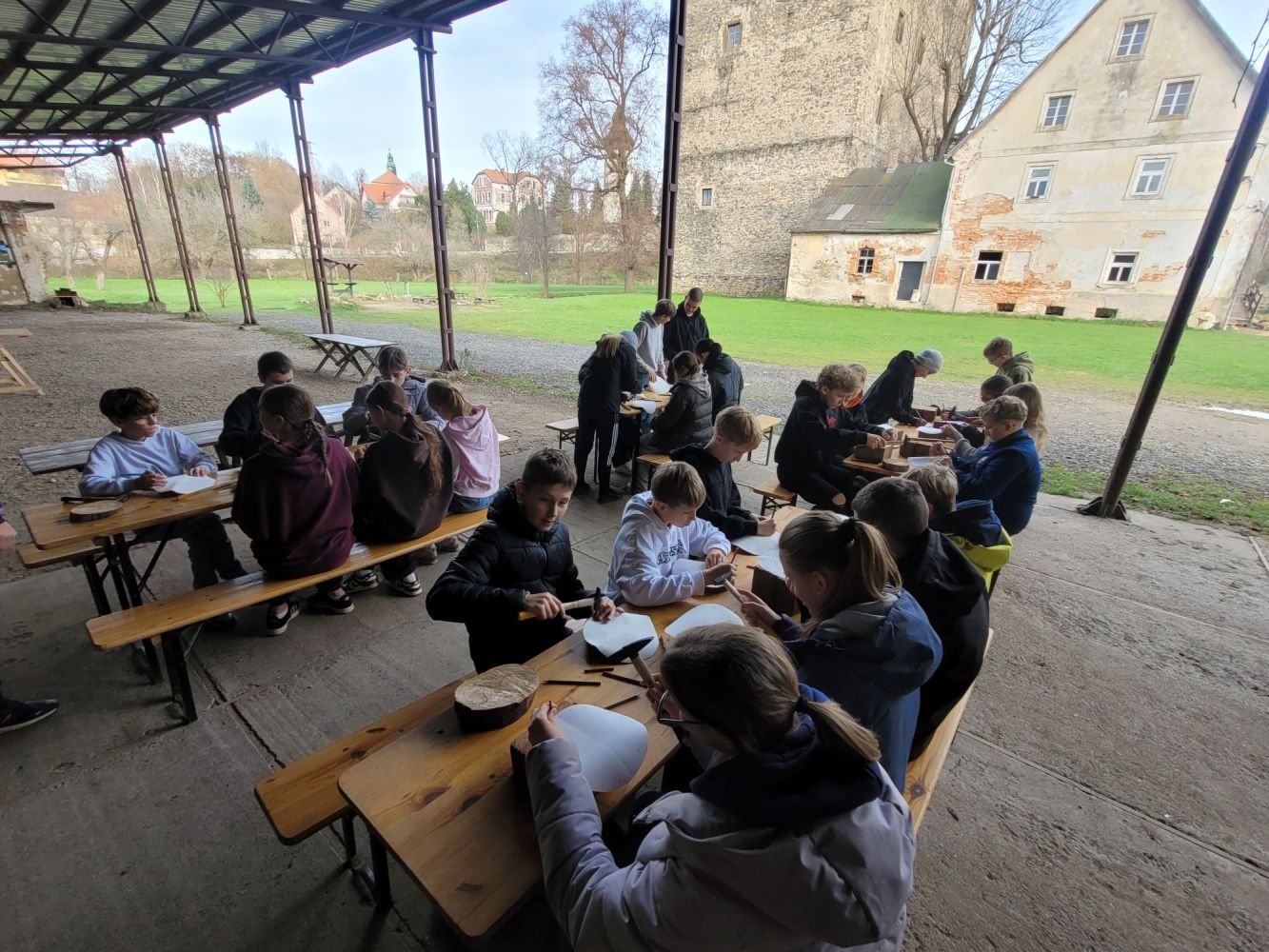 Kolejnym miejscem, które odwiedziliśmy, był zamek Wleń ( Lenno) – najstarszy murowany zamek na Śląsku. Położony malowniczo na Górze Zamkowej nad Doliną Bobru zachwycił wszystkich swoją historią sięgającą XII wieku oraz piękną panoramą, którą podziwialiśmy z wieży zamkowej. Ostatnim punktem programu było zwiedzanie Wieży Książęcej w Siedlęcinie- wyjątkowego zabytku średniowiecznej architektury świeckiej, w której zachowały się unikalne na skalę Europy polichromie przedstawiające legendę o sir Lancelocie z Jeziora. Uczniowie wzięli również udział w warsztatach kaletniczych, podczas których wykonali samodzielnie sakiewki. Wyjazd był doskonałą okazją do nauki historii regionu w terenie, integracji oraz wspólnego odkrywania piękna Dolnego Śląska.