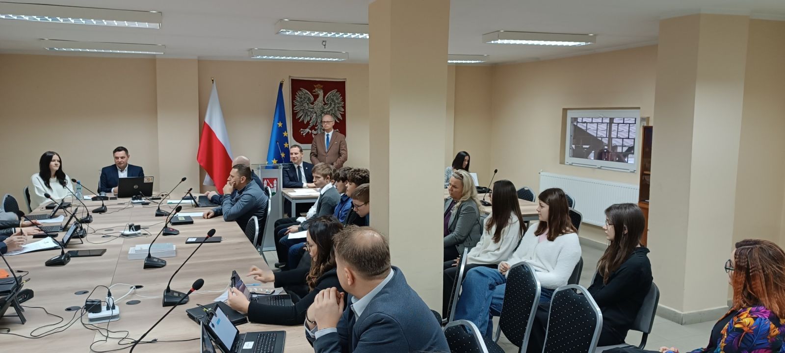 Przewodniczący Rady, Sekretarz Gminy, Wójt Gminy oraz Radni przybliżyli młodzieży najważniejsze zagadnienia związane z funkcjonowaniem Rady Gminy: kompetencje Rady Gminy, wybory do Rady, zasady głosowania na sesji, konstrukcja prawna uchwał itp. Następnie młodzież miała okazję przyjrzeć się przebiegowi obrad i poznać praktyczne aspekty pracy samorządu.