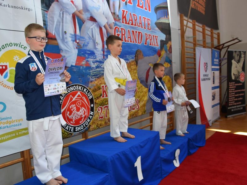 W sobotę (16.12) w Lutyni zawodnicy Karkonoskiego Klubu Karate Shotokan uczestniczyli w Finale Dolnośląskim Igrzysk Dzieci, Młodzieży i Licealiada w Karate. Organizatorami turnieju byli Szkolny Związek Sportowy "Dolny Śląsk", Karate - Budokan Wrocław oraz Dolnośląski Związek Karate WKF. Tym razem, co bardzo ważne, zawodnicy reprezentowali szkoły, do których uczęszczają na co dzień. Uzyskane zatem wyniki do 7 miejsca włącznie skutkują podwyższeniem oceny z wychowania fizycznego oraz wpisem na świadectwo, a w niektórych przypadkach stypendium sportowym w szkole.