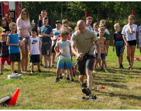 Przed godziną 17 przedstawiciele OSP w Janowicach Wielkich rozpoczęli konkurs dla dzieci pn. "Tor przeszkód z OSP", który cieszył się bardzo dużym zainteresowaniem. Maluchy miały okazję sprawdzić swoje siły, pokonując jak najszybciej wiele przeszkód, jakie stanęły im na drodze. Strażacy zabezpieczali małych śmiałków i czuwali nad ich bezpieczeństwem. W trzech grupach wiekowych wyłoniono najszybszych zawodników. Wójt wręczył zwycięzcom dyplomy i nagrody. Dla wszystkich uczestników nie zabrakło słodkich "nagród pocieszenia". Tor przeszkód okazał się również atrakcją dla dorosłych. Kilkoro śmiałków miało okazję przekonać się z jakimi trudnościami na co dzień borykają się strażacy.