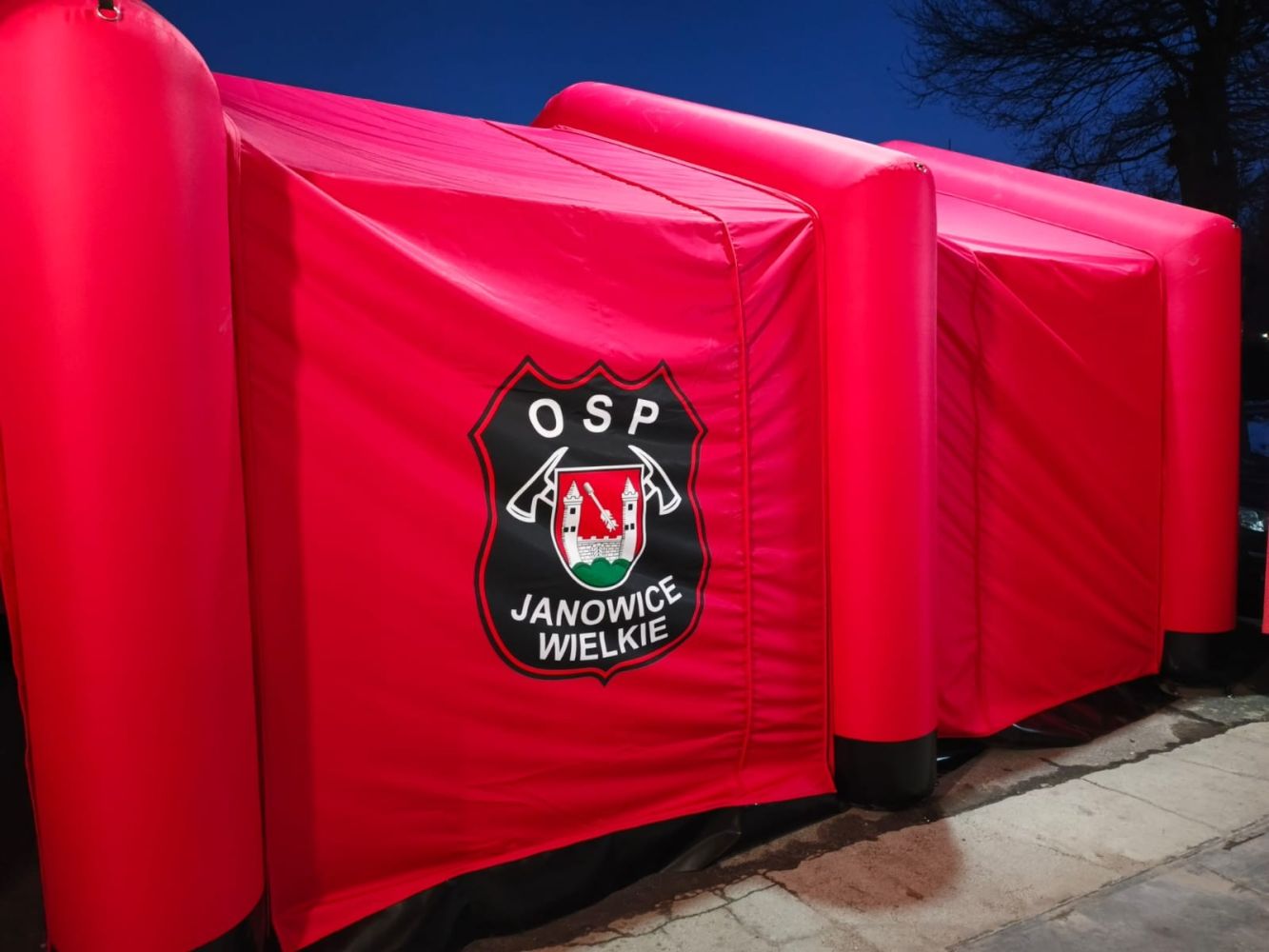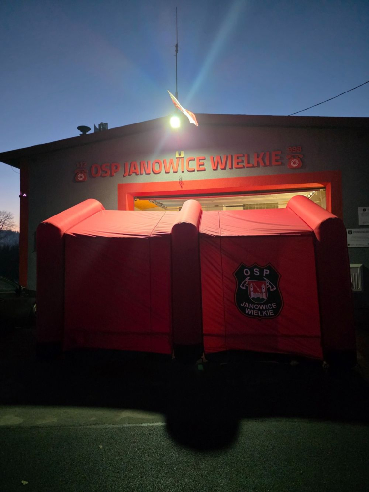W ramach zadania nasza OSP otrzymała namiot pneumatyczny wraz z osprzętem oraz cztery hełmy strażackie, co znacząco poprawia ich wyposażenie i gotowość do działań ratowniczych.
