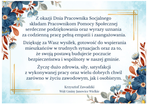 Szanowny Panie Jarosławie Wasilewski,Pastorze Kościoła Dla Regionu w Janowicach Wielkich Z ogromną dumą i wdzięcznością…